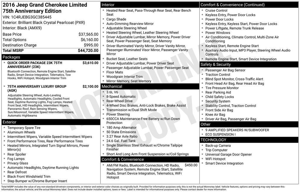 2016 Jeep Grand Cherokee Limited 75th Anniversary