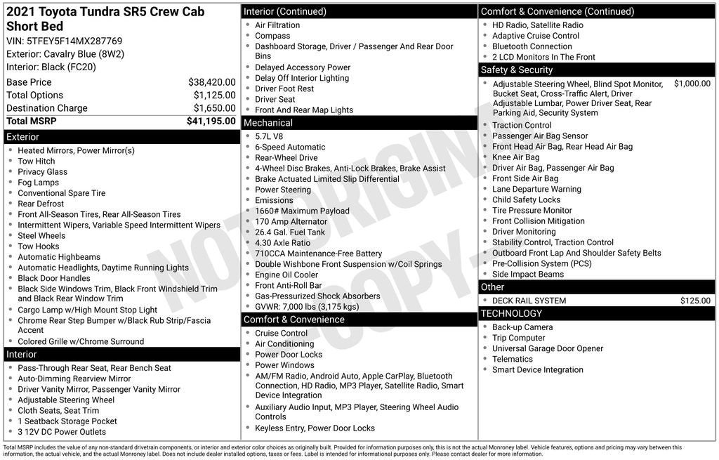 The Manufacturer's Suggested Retail Price excludes tax, title, license, dealer fees and optional equipment. Dealer sets final price.