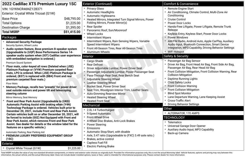 - Premium Luxury Preferred Equipment Group includes standard equipment