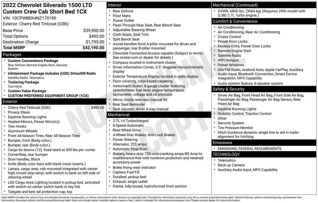 The Manufacturer's Suggested Retail Price excludes tax, title, license, dealer fees and optional equipment. Dealer sets final price.
