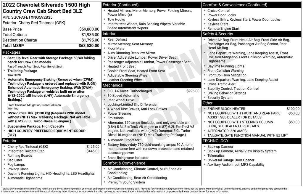 - High Country Preferred Equipment Group includes standard equipment