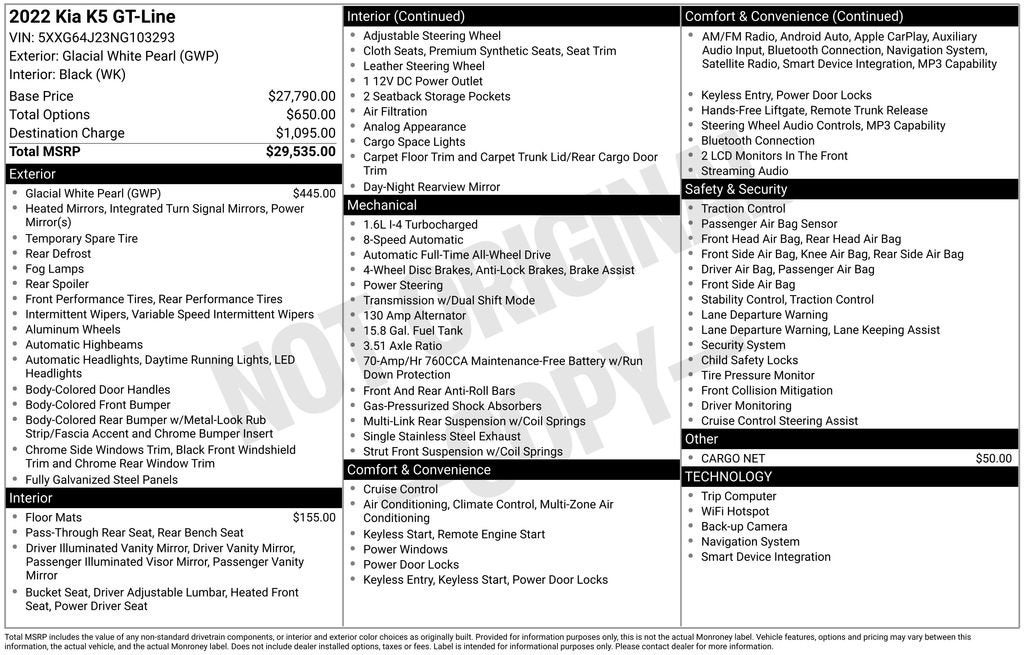 All Vehicles Quoted price exclude $1,199 dealer service fee, $499 Electronic Filing Fee and $129 tag agency fee (which charges represent cost and profit to the dealer for items such as inspecting, cleaning, adjusting vehicles, preparing documents related to the sales and filling electronically the transaction), sales tax, tag, title and government fees. New vehicle pricing already includes all generally available manufacturer incentives which may expire at any time. Accessories and color may vary. Prices are subject to change without notice to correct errors or omissions, or in the event of inventory fluctuations. We have made reasonable effort to ensure that the information on this site is accurate, but we do not guaranty this. Neither we, nor our suppliers assume any responsibility for errors or omissions or warrant the accuracy of this information. Inventory shown is subject to prior sale and may be unavailable. Prices are valid only on the day of publication. Internet price not available with any manufacturer-preferred lender special promotional financing, lease, and some other offers. Must present or refer to this internet advertisement to qualify for the internet price. Please contact the store through our website or by phone for more details and availability. We will NOT sell or lease New Vehicles in the states of Alaska, Montana, New Hampshire, or Oregon. New Vehicles are for sale or lease to an ultimate consumer only. We will NOT sell or lease a New Vehicle to any person whose name, address, or business appears on the manufacturer Suspected Exporter Manifest or any suspected reseller or exporter. Finally, please note that any used vehicle you are considering may have unrepaired manufacturer safety recalls. To check the recall status of the specific used vehicle you are interested in purchasing, please visit www.safercar.gov. MPG estimates on this website are EPA estimates -- your actual mileage may vary. For used vehicles, MPG estimates are EPA estimates for the vehicle when it was new. The EPA periodically modifies its MPG calculation methodology; all MPG estimates are based on the methodology in effect when the vehicles were new (please see the "Fuel Economy" portion of the EPA's website for details, including an MPG recalculation tool). The Manufacturer's Suggested Retail Price excludes tax, title, license, dealer fees and optional equipment. Dealer sets final price.